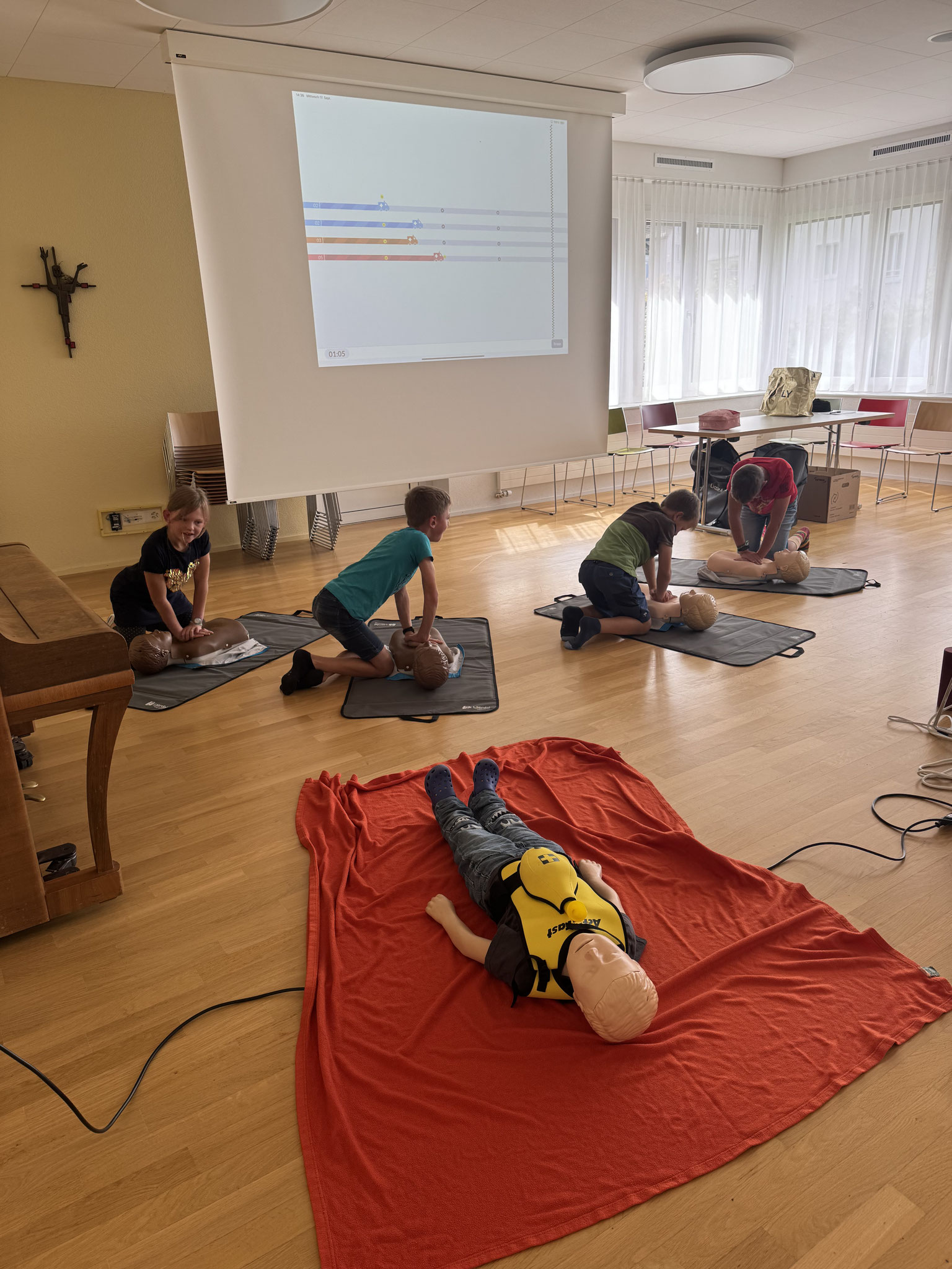 Die Kinder ab der 3. Klasse durften einen lehrreichen Nachmittag mit den Kursleitern von REA 2000 verbringen. Diverse Bagatellfälle wurden besprochen und auch die Herzmassage wurde spielerisch vermittelt.