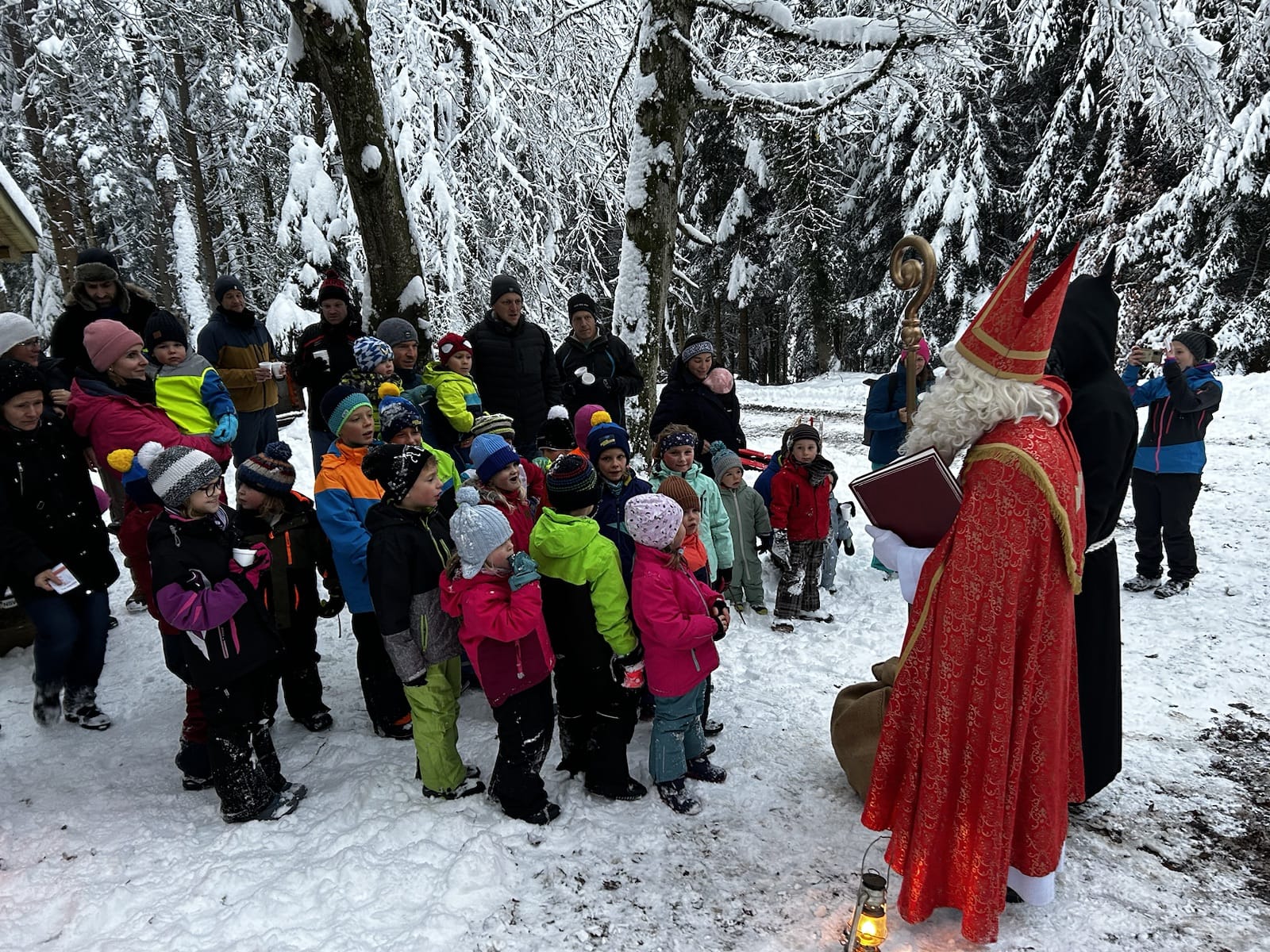 Fast 30 Kinder besuchten auch dieses Jahr den Samichlaus im Wald. Gemütlich wurden die Kinder vom Lagerfeuer empfangen und warteten gespannt auf das Eintreffen vom Samichlaus und dem Schmutzli.  Nachdem die Sprüchli erzählt und die Chlaus-Säggli verteilt waren, verweilten die Familien noch bei Glühwein, Punsch und einer feinen Wurst.